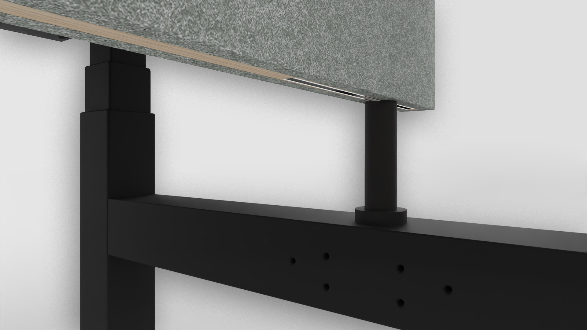 De akoestische tussenwand is een stijlvolle oplossing die speciaal is ontworpen voor duo-werkplekken. De tussenwand beschikt over twee verschuifbare magneten waardoor het paneel eenvoudig op ieder frame bevestigd kan worden. De ophoogklossen zorgen voor een moeiteloze kabeldoorvoer.