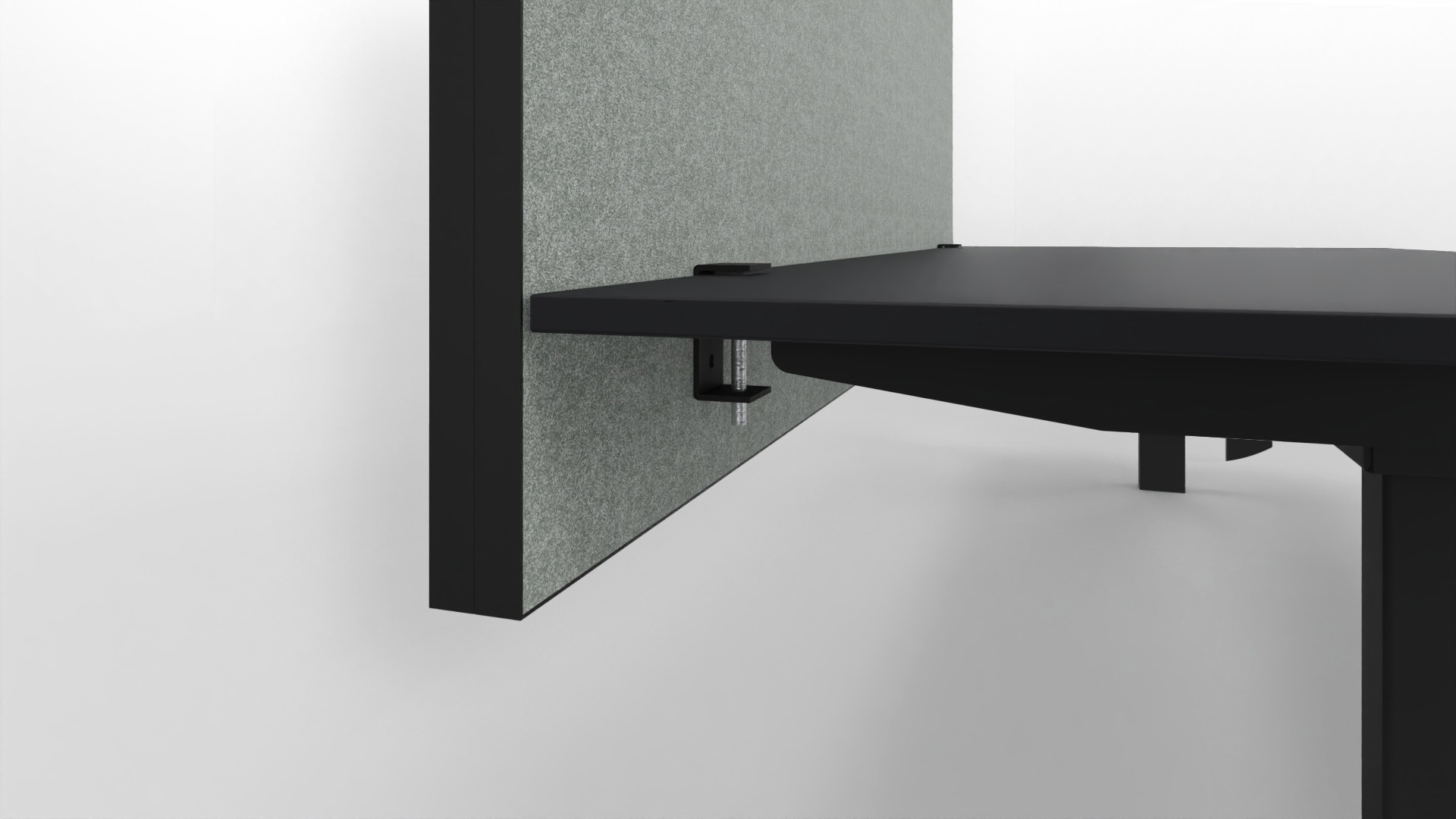 De akoestische voorzetwand is een praktische en stijlvolle oplossing voor meer rust op de werkplek. De voorzetwand is eenvoudig te bevestigen aan het tafelblad door middel van twee stevige bladklemmen. Het paneel begint 15 cm onder het blad waardoor je naast rust ook nog eens privacy creëert.