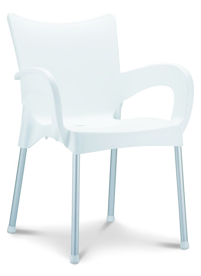 Stapelbare armstoel met een kunststof kuip van 100% recyclebaar polypropyleen en 25mm poten in geanodiseerd aluminium. Geschikt voor binnen en buiten. Snel leverbaar in 7 kleuren. Per stuk te bestellen. Gemonteerd geleverd.