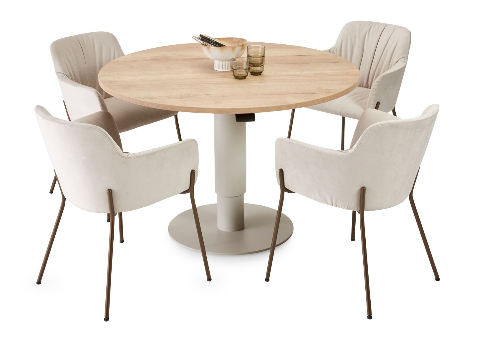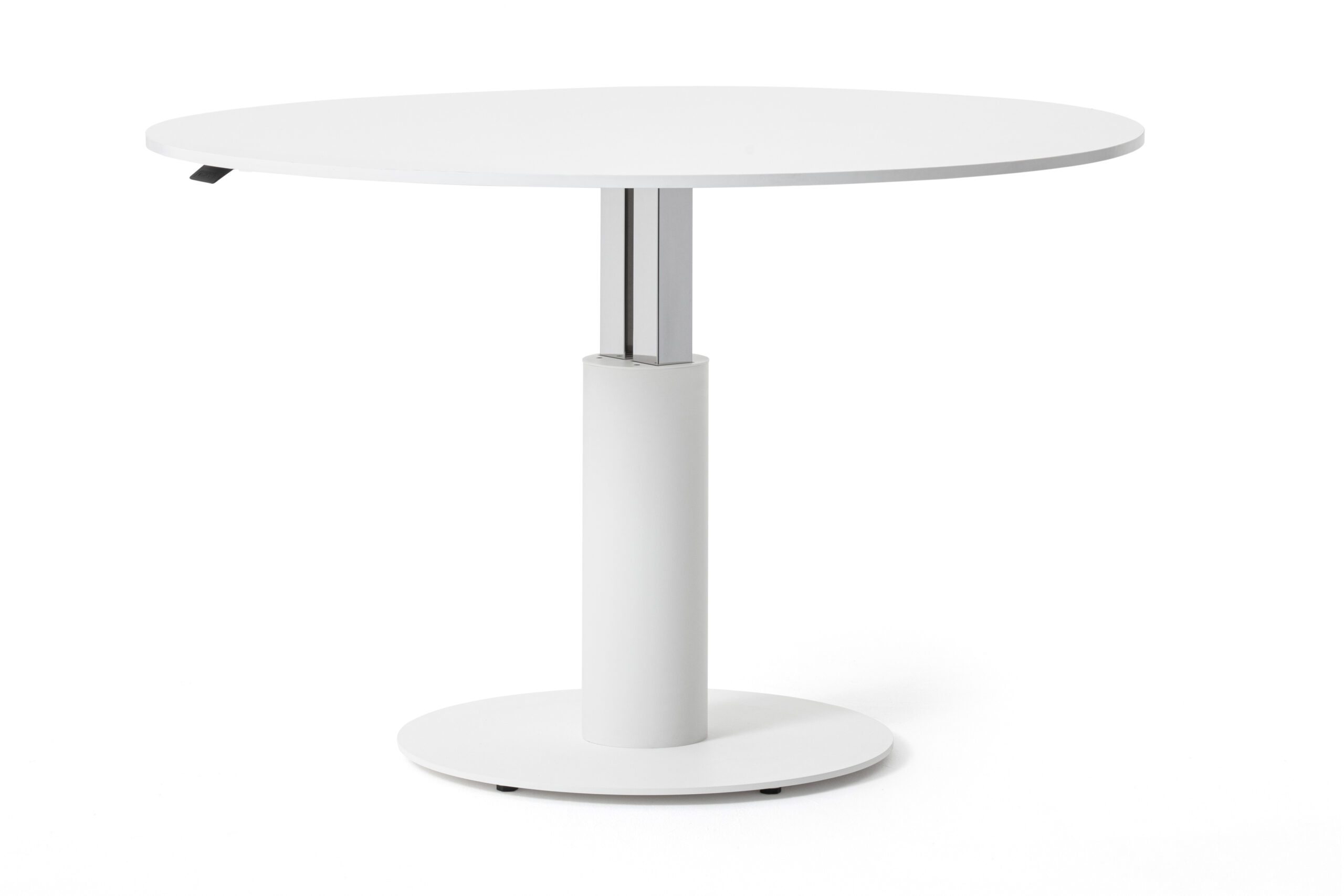 Eenvoudig en stroomloos vergaderen aan een zit-statafel, dat kan met de Follow Break en Meeting tafels. Met zware voetplaat en kolompoot. Stroomloos in hoogte verstelbaar van 70-116cm.