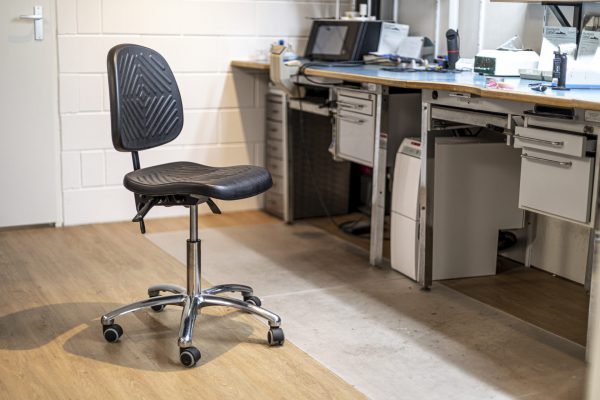 De GMS200 werkstoel heeft een zeer royale zit en rug van hoogwaardige PUR met veel ventilatieheuvels, waardoor transpiratie wordt tegengegaan.