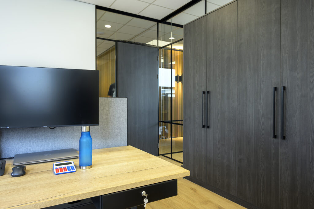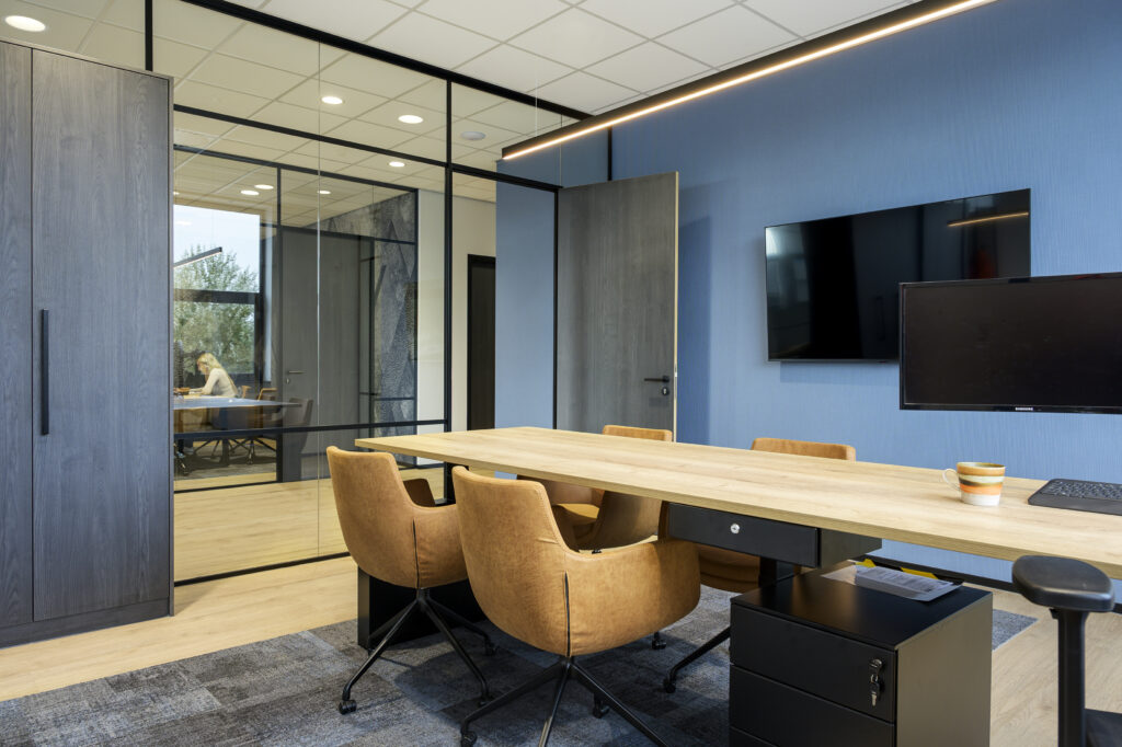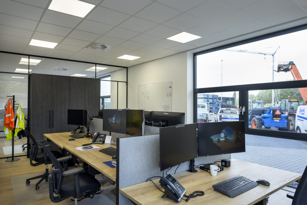 Kantoormeubilair: voor een efficiënte inrichting van de kantoren is gekozen voor een combinatie van enkele, duo en hoekbureaus. Alle bureaus zijn elektrisch in hoogte verstelbaar, en de ruimtes zijn voorzien van akoestische tussenwanden. Daarnaast zijn twee directiebureaus op maat gemaakt. In totaal zijn 32 werkplekken volledig conform de huidige NPR normen geleverd.